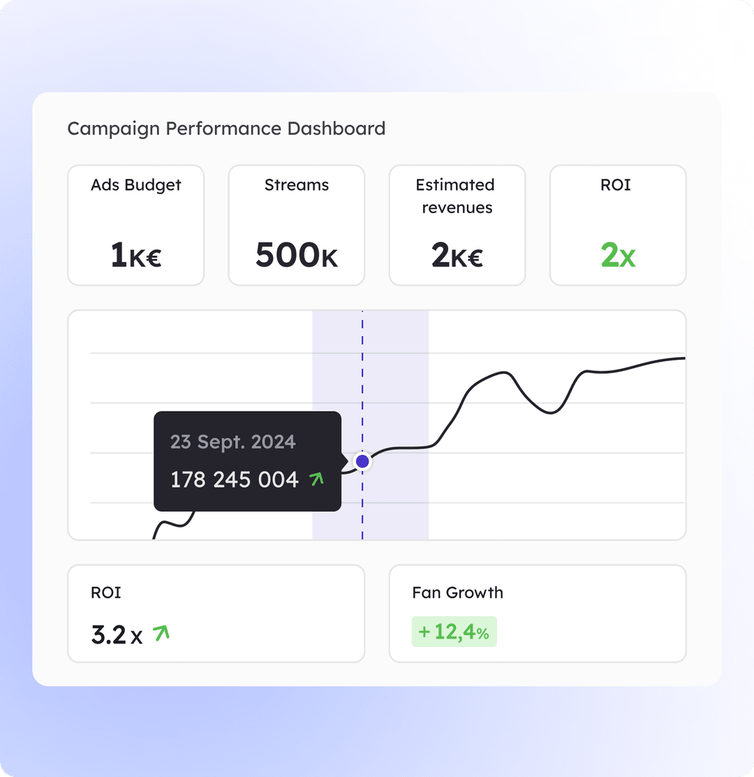 Base for Music is the marketing solution specialized in fan acquisition, enabling you to achieve your growth goals and providing you with transparent data to measure your return on investment.