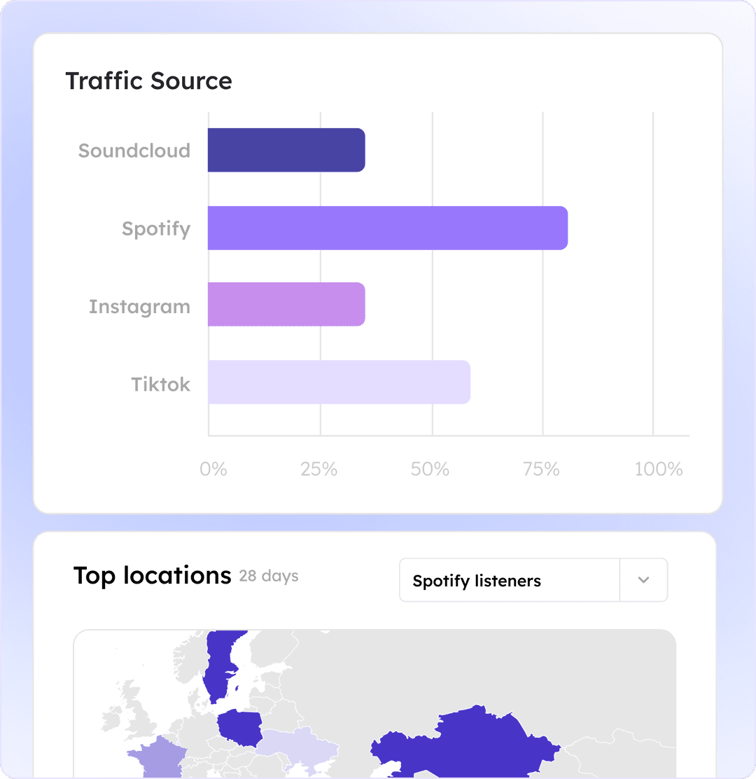Leverage Smartlinks to boost fan retention and catalog discoverability, while capturing fan data and engagement — all tracked and centralized for future insights.