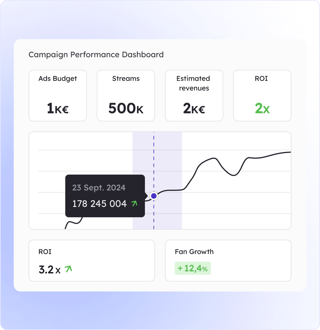 The minimum budget to launch a campaign with Base for Music is €100. However, for better audience testing and stronger results, we recommend starting with a higher budget. This approach ensures your campaign has the reach and flexibility needed for optimal performance.